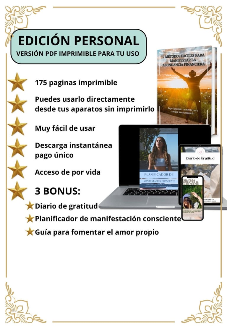Paso a paso con los herramientas y ejercicios de crecimiento personal incluidos en nuestro Libro digital, Guía, Planificador y Diario.